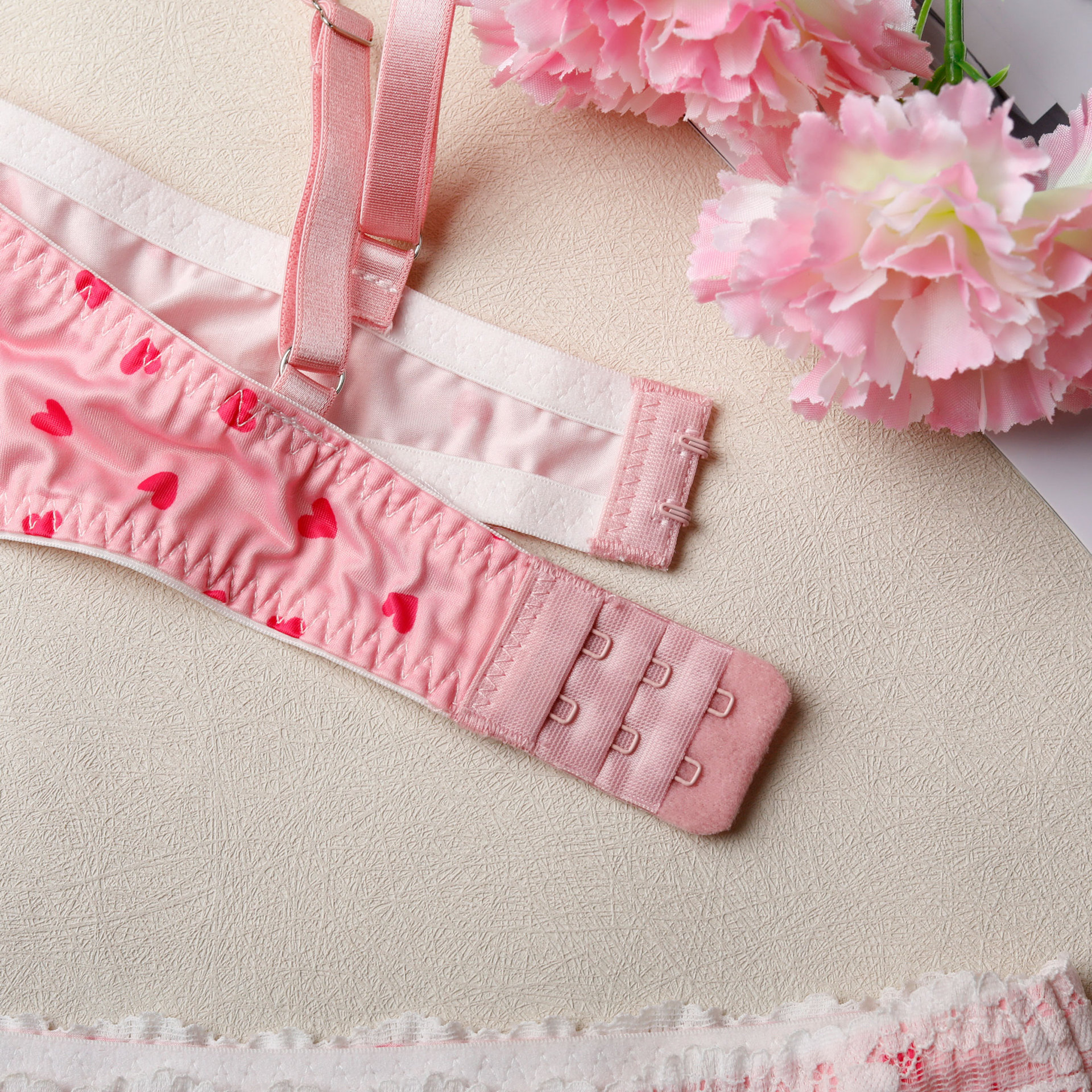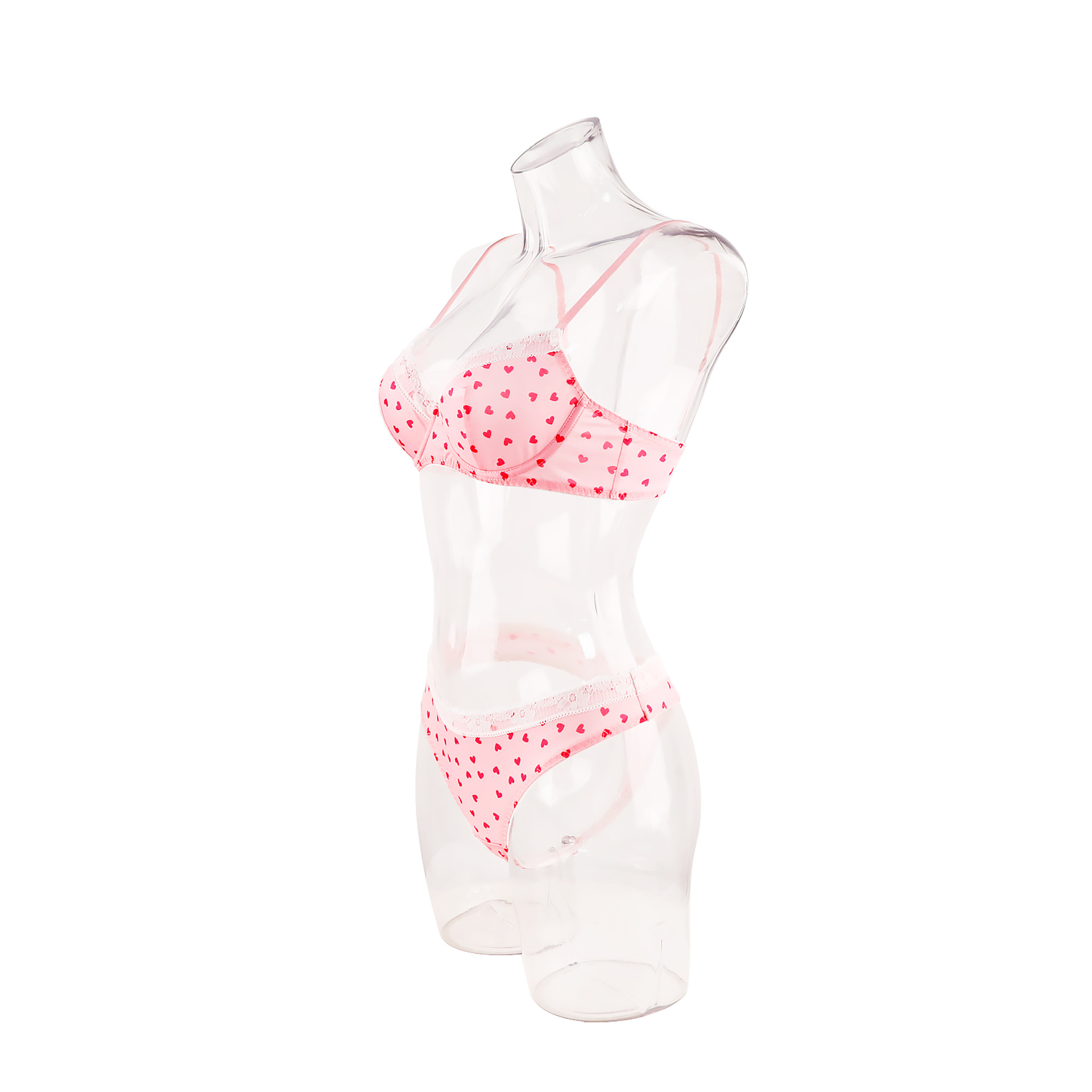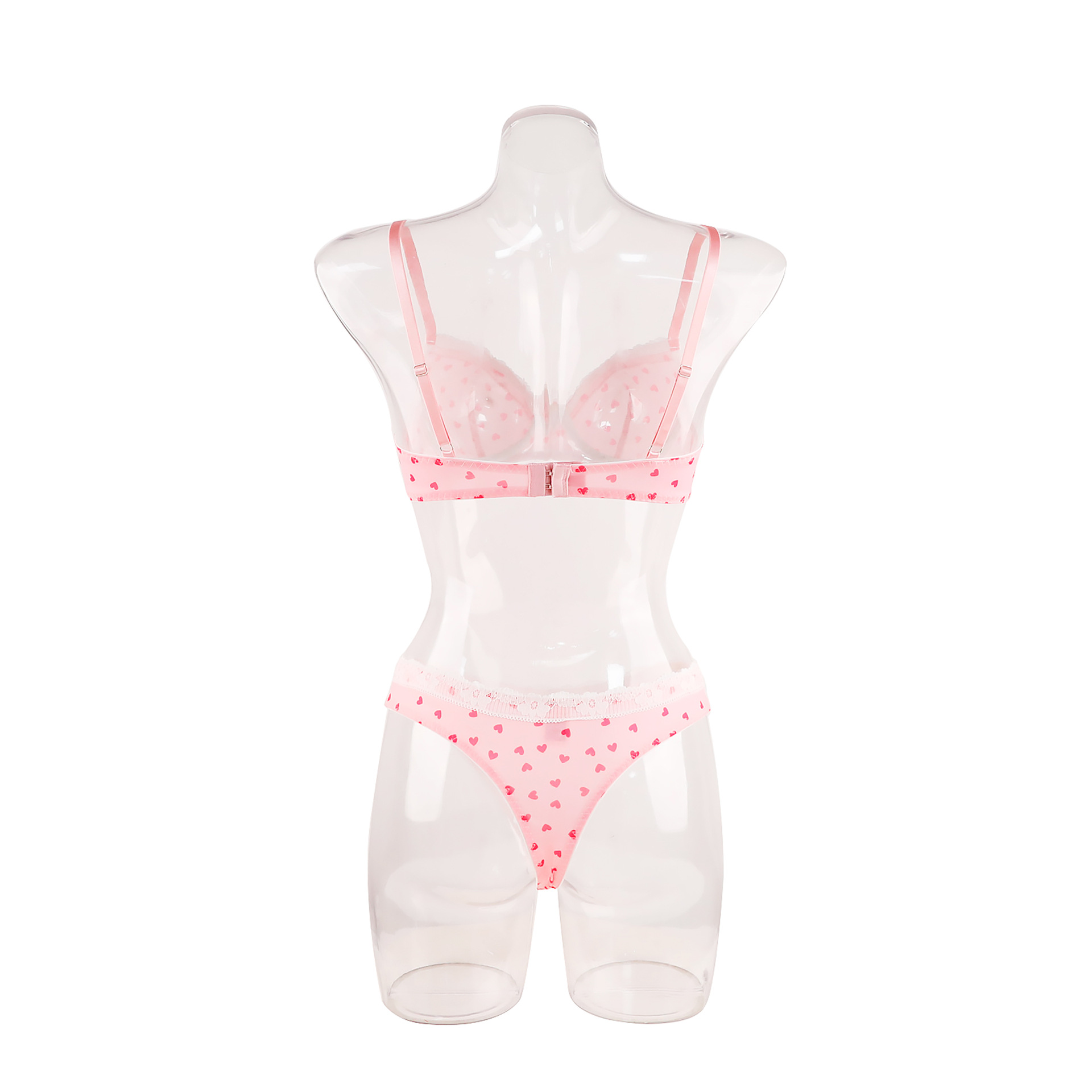 Lace Trim Bra And Underwear Set With A Heartprint For A Push-Up Effect
