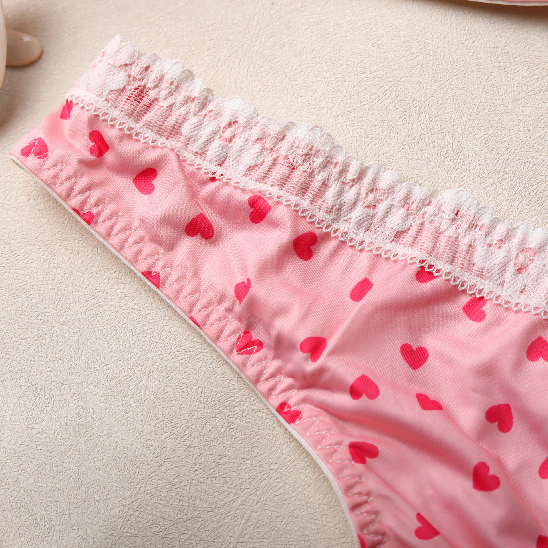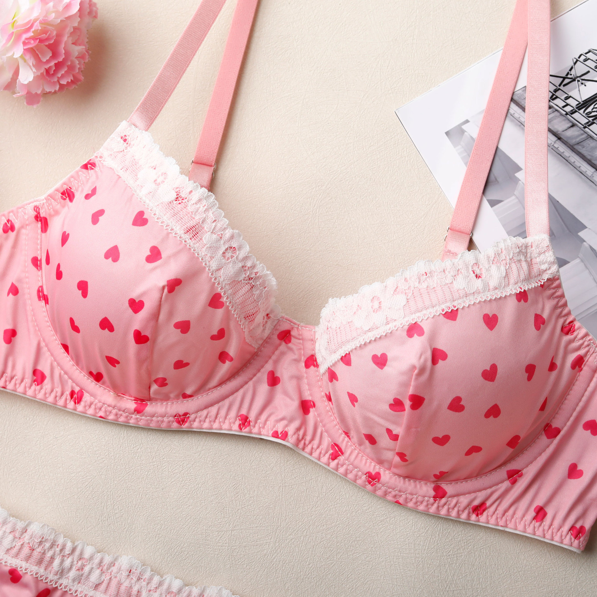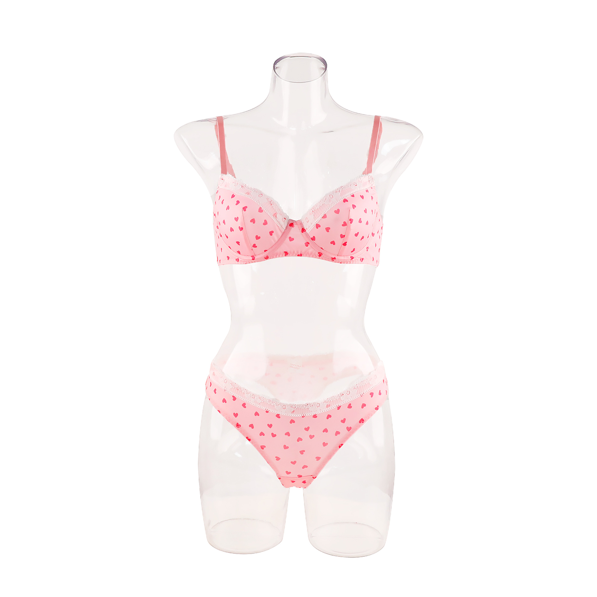 Lace Trim Bra And Underwear Set With A Heartprint For A Push-Up Effect