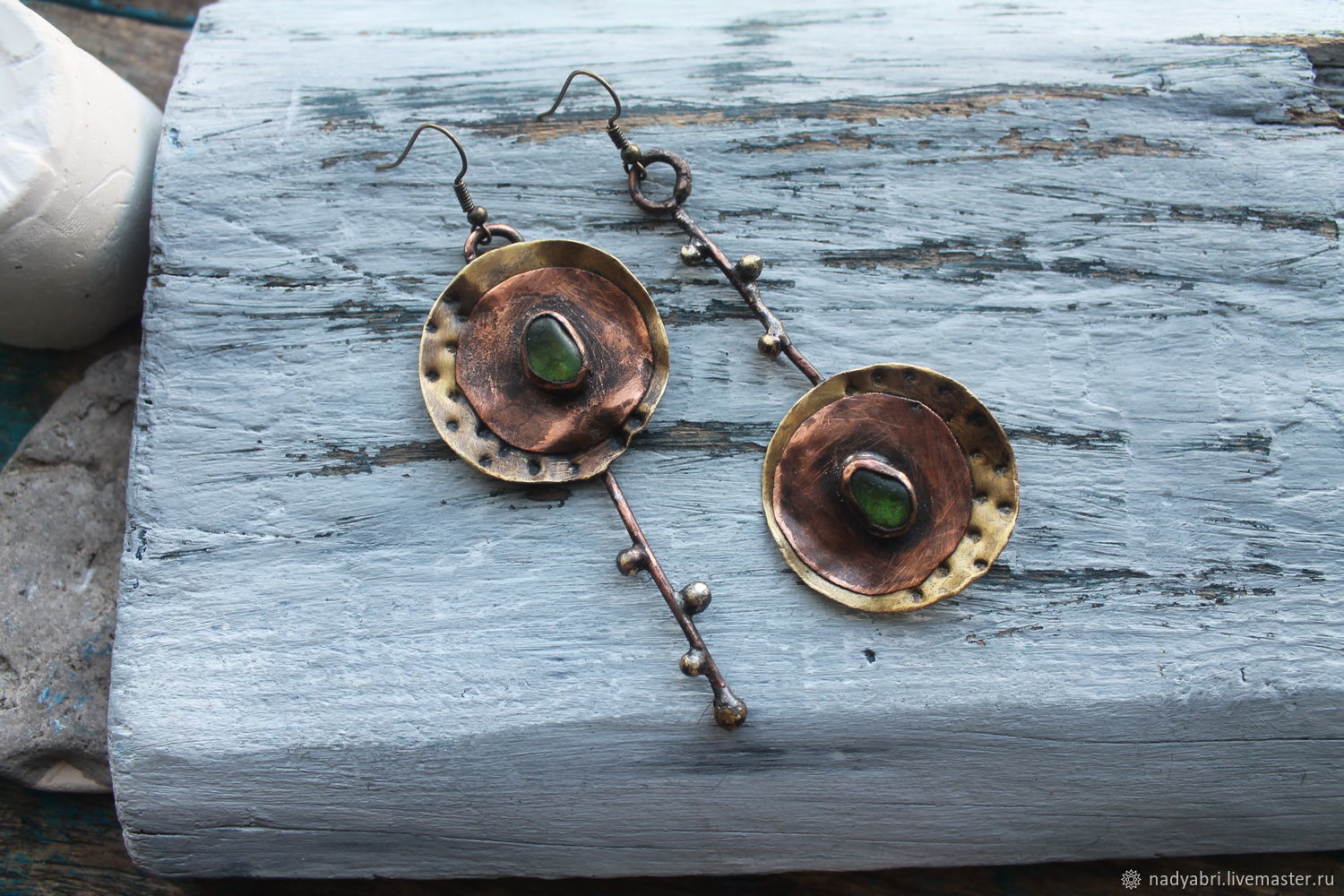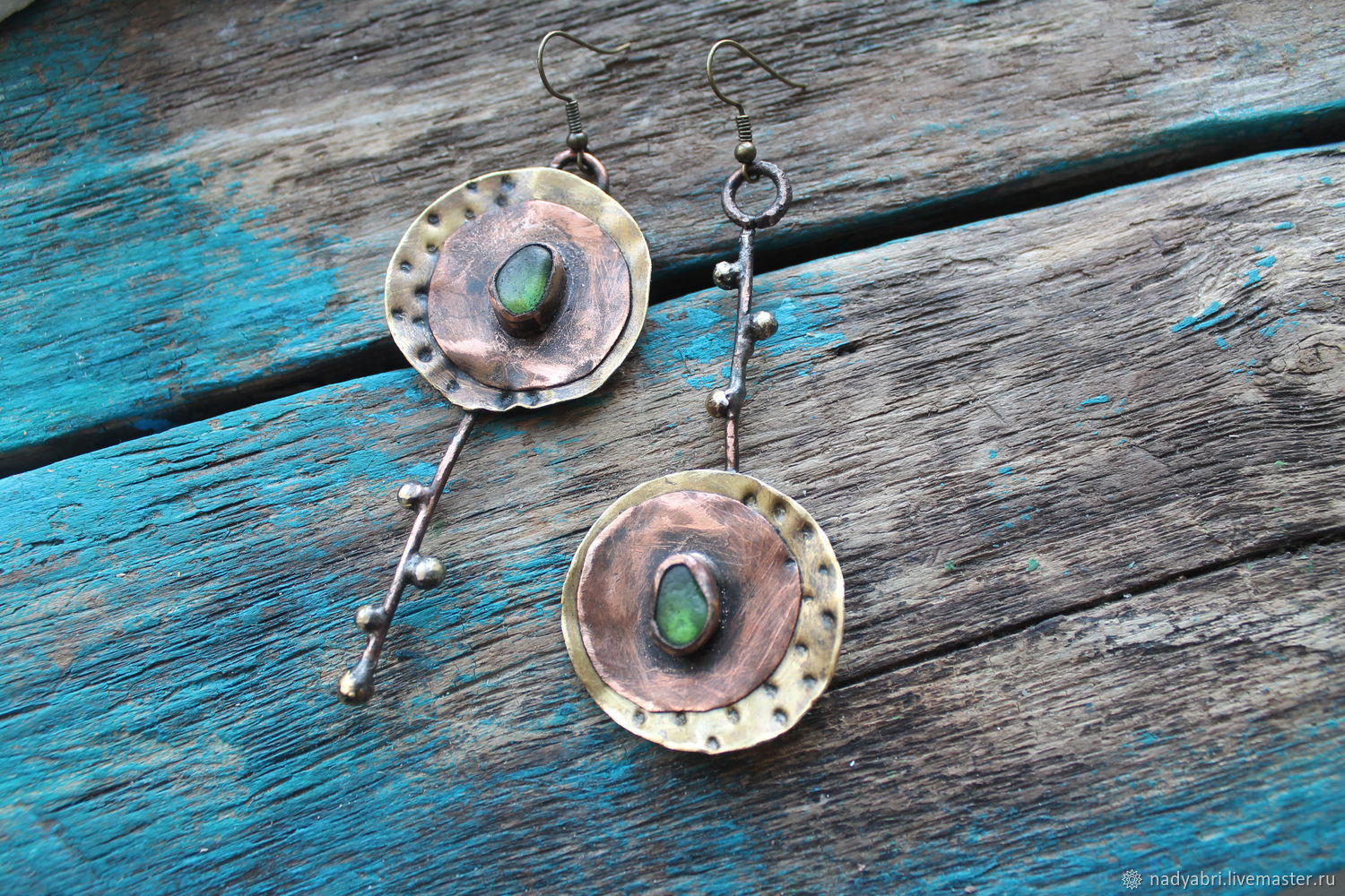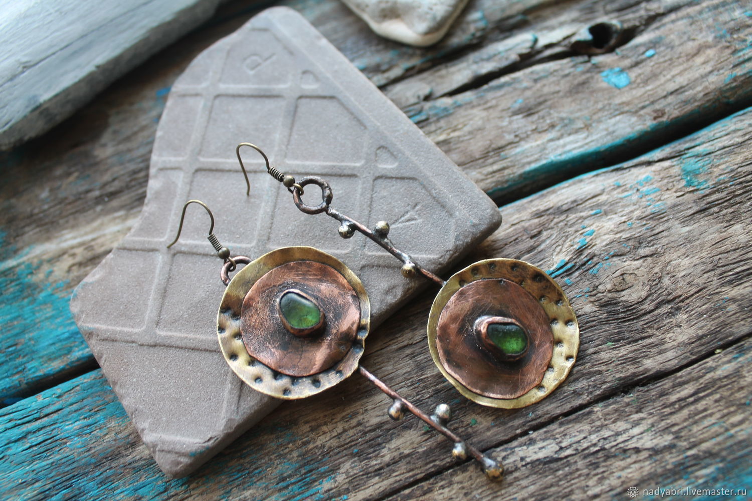Retro Creative Asymmetric Bronze Special-interest Design Inlaid Gemstone Earrings