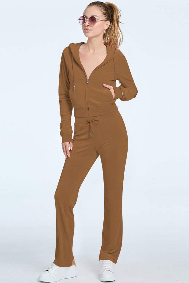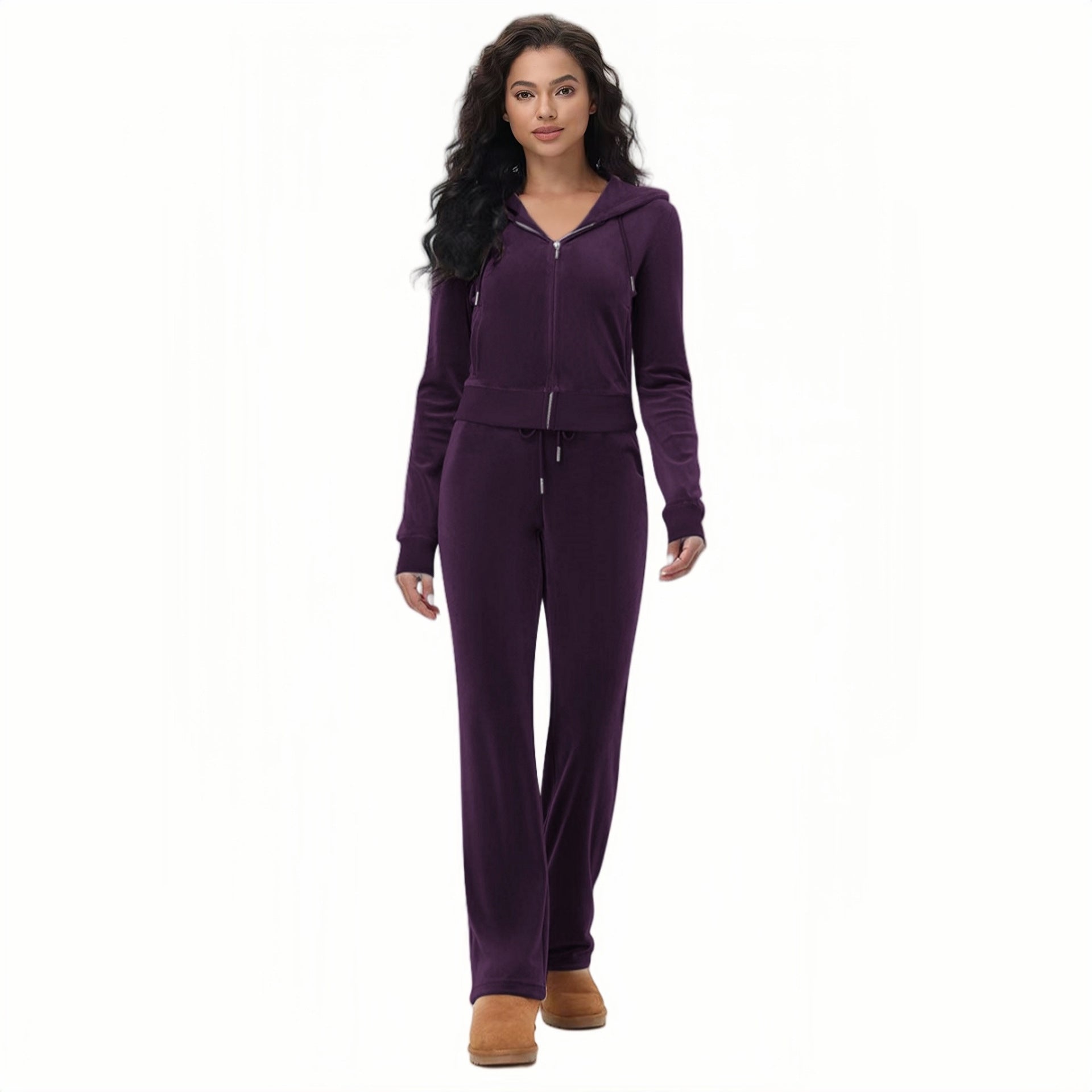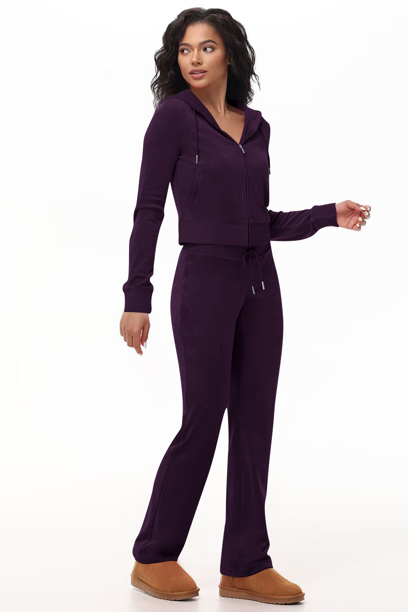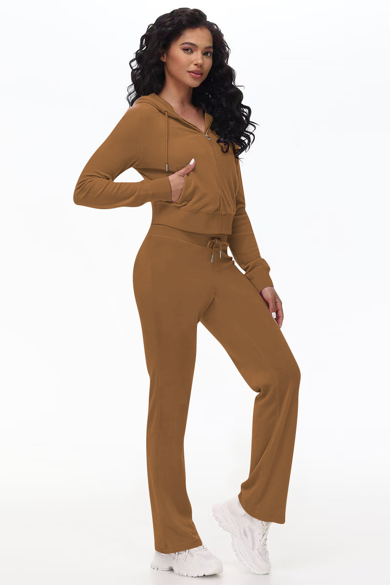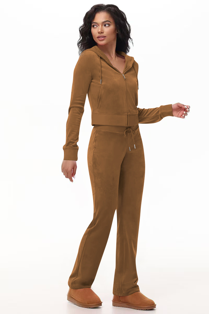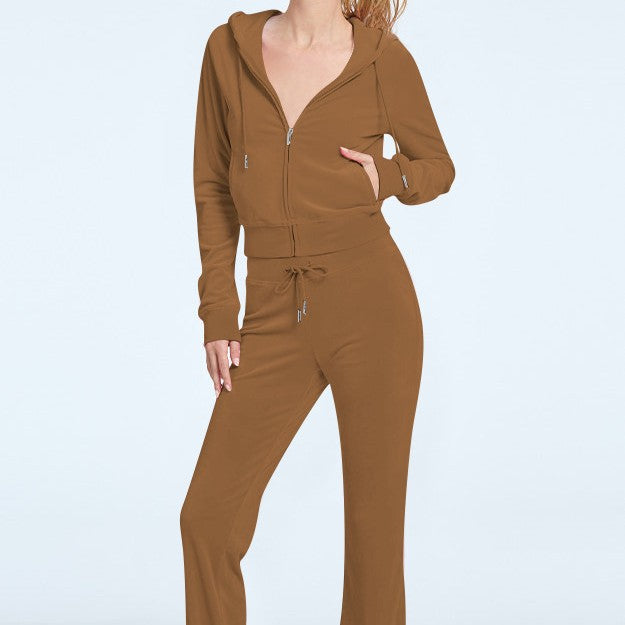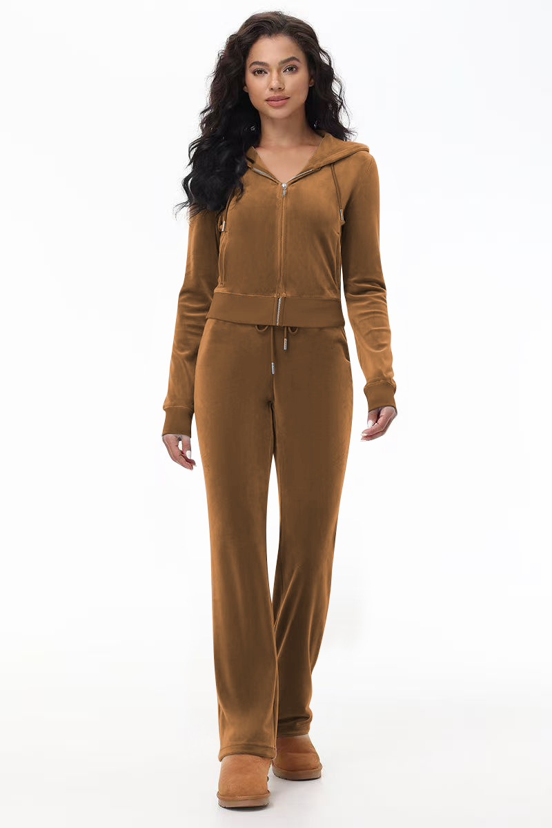Stylish Silver Fox Fleece Hooded Cardigan Two-Piece Set