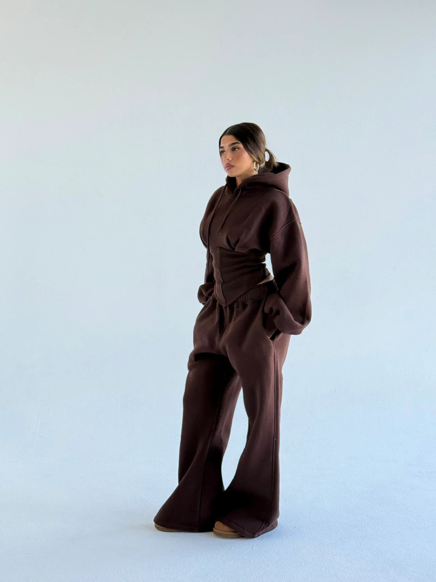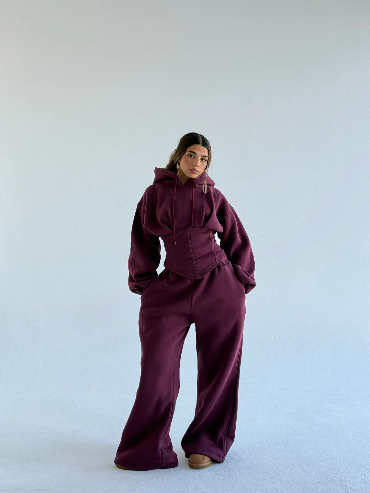 Waist Drawstring Hooded Top And Pants Two-piece Set