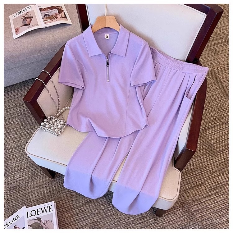 Womens Casual Fashionable Plus-size Short-sleeve Set