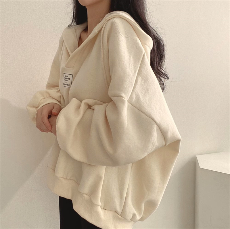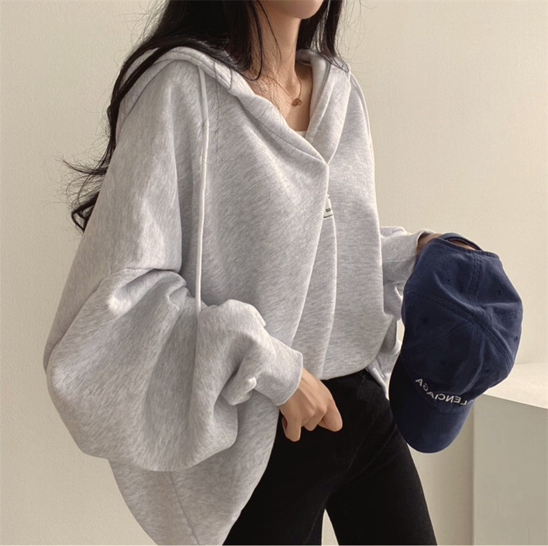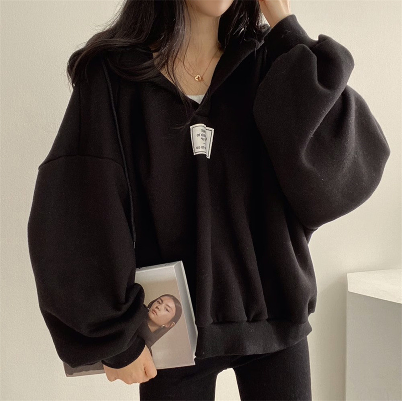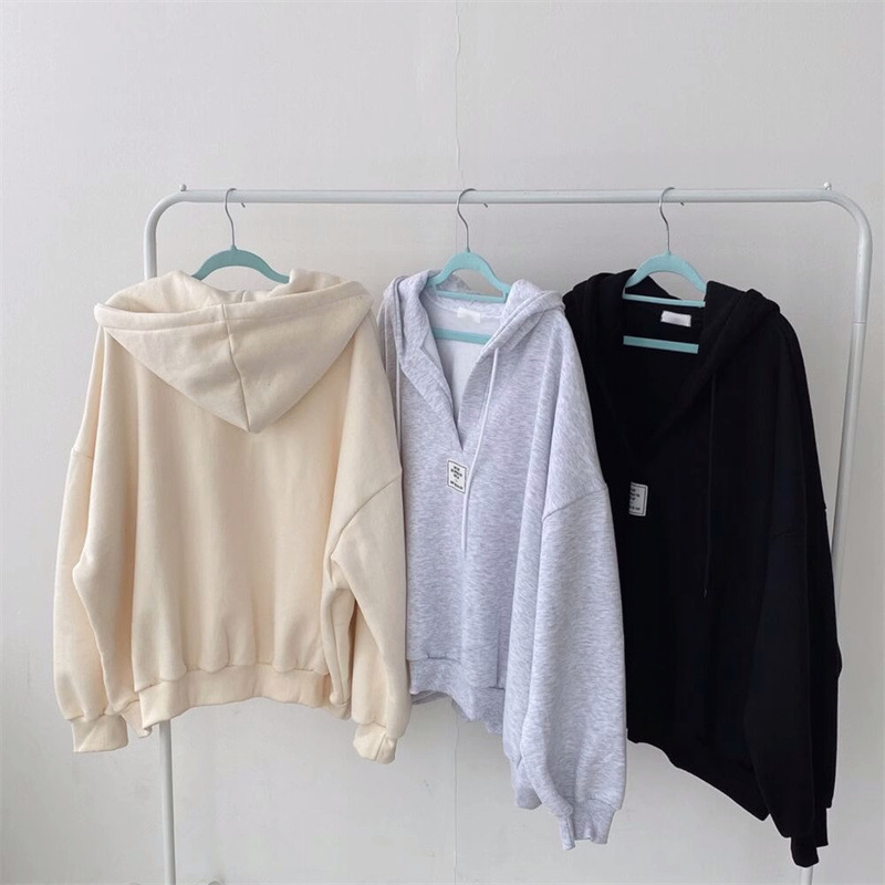 Womens Loose-fitting Versatile Hooded V-neck Sweatshirt