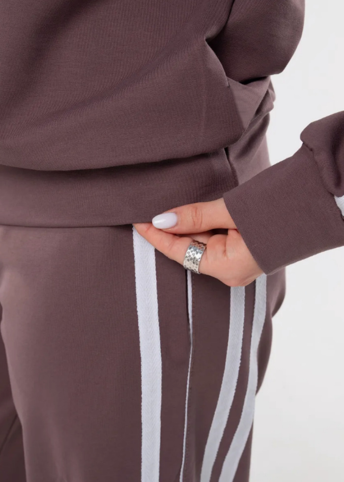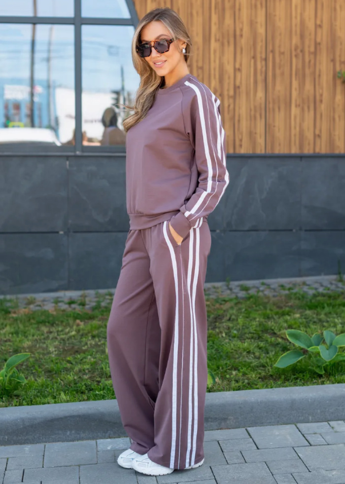 Womens Striped Loose-Fit Long-Sleeve Half-Zip Hoodie With Drawstring And Matching Sweatpants Set