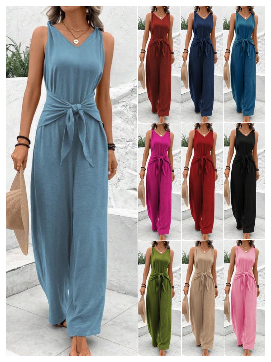Womens V-neck Sleeveless Wide-leg Jumpsuit